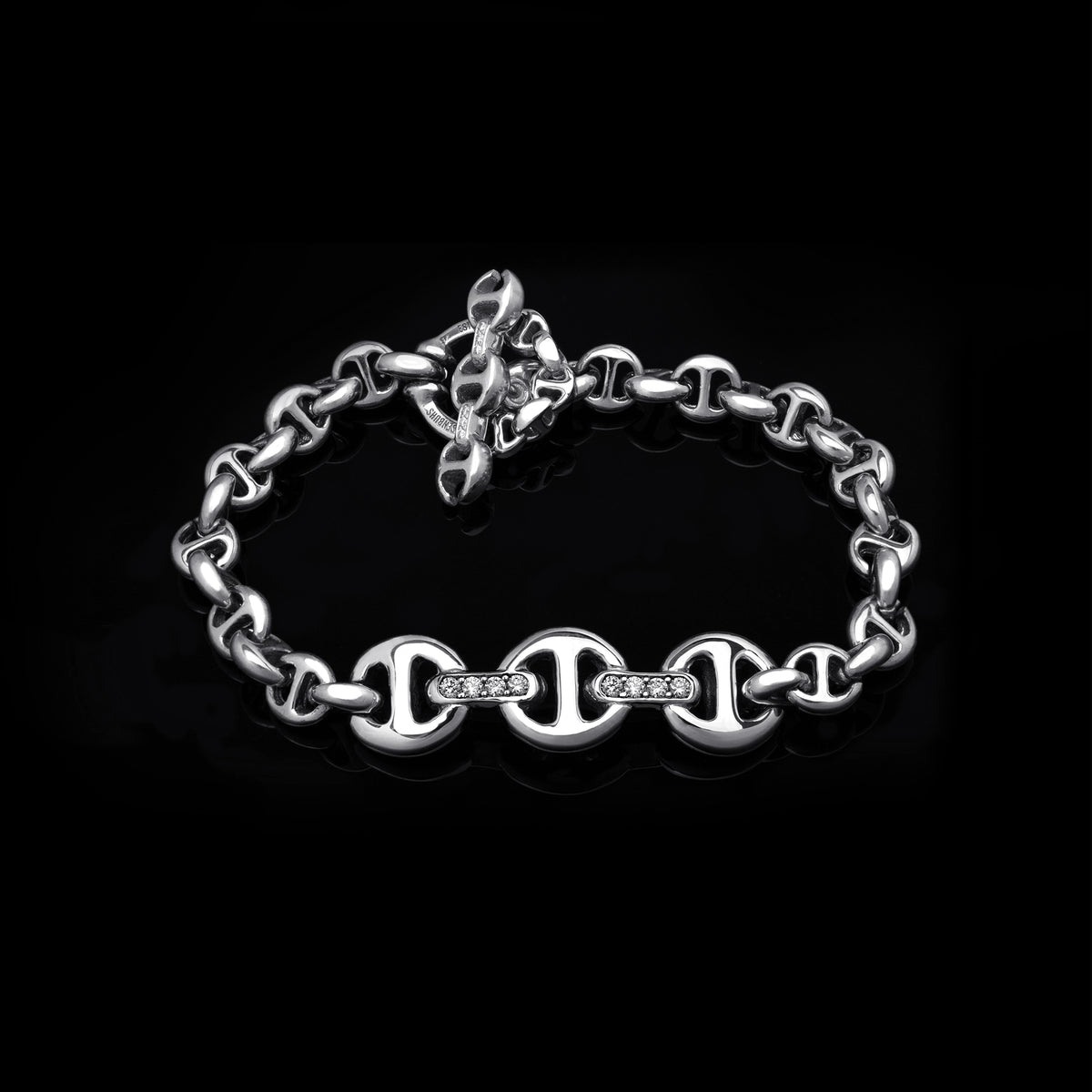 Each bracelet is crafted by hand and finished to HOORSENBUHS®’ exacting standards. Diamonds are set with precision into the bridge elements to preserve clean geometry and material integrity, while the tri-link loop and toggle closure provide secure, balanced wear.