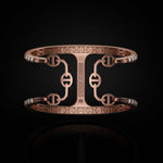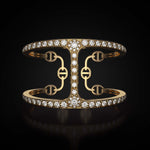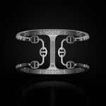 The Phantom Cuff with Diamonds is constructed from solid 18K gold or sterling silver and defined by HOORSENBUHS®’ Phantom link architecture. A single elongated link is wrapped and extended around the wrist to form a continuous open structure.