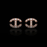 Small Link Studs with Diamonds - 18K Yellow Gold