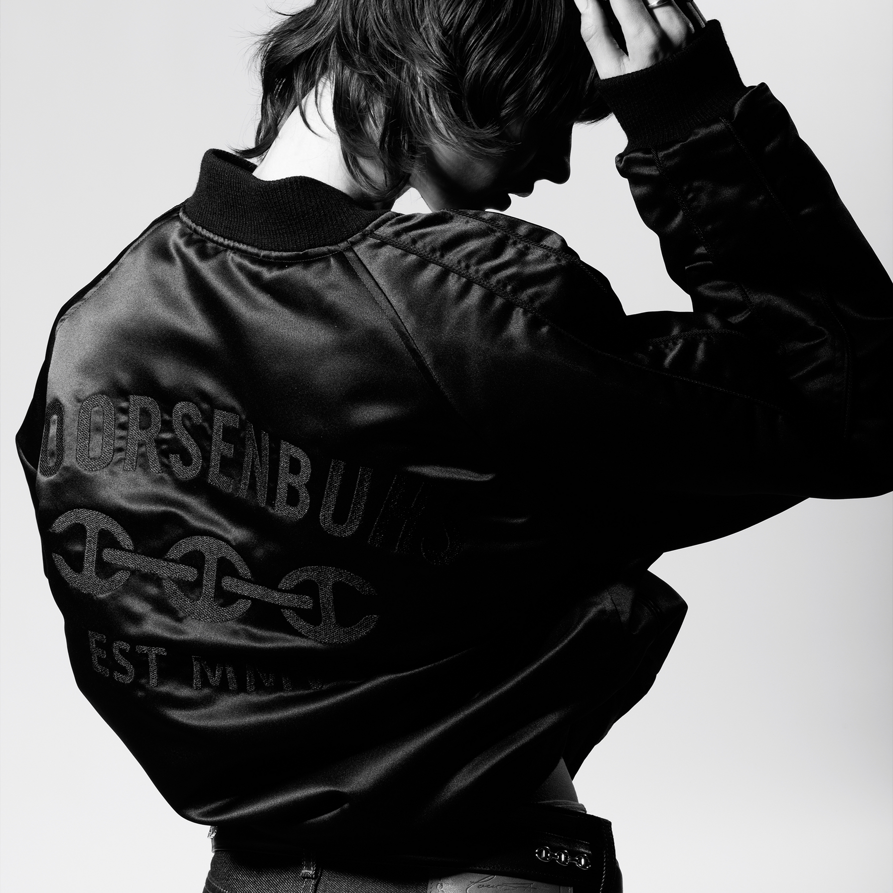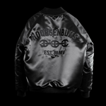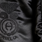 Unit price perFeaturing a satin outer shell with piping, acrylic trim, and padded nylon lining, our souvenir jacket is embellished with tonal embroidery on the left chest and back. Custom branded zero-snap hardware for closure. Made-to-order in our California Atelier. Please allow 2-3 weeks for shipping.