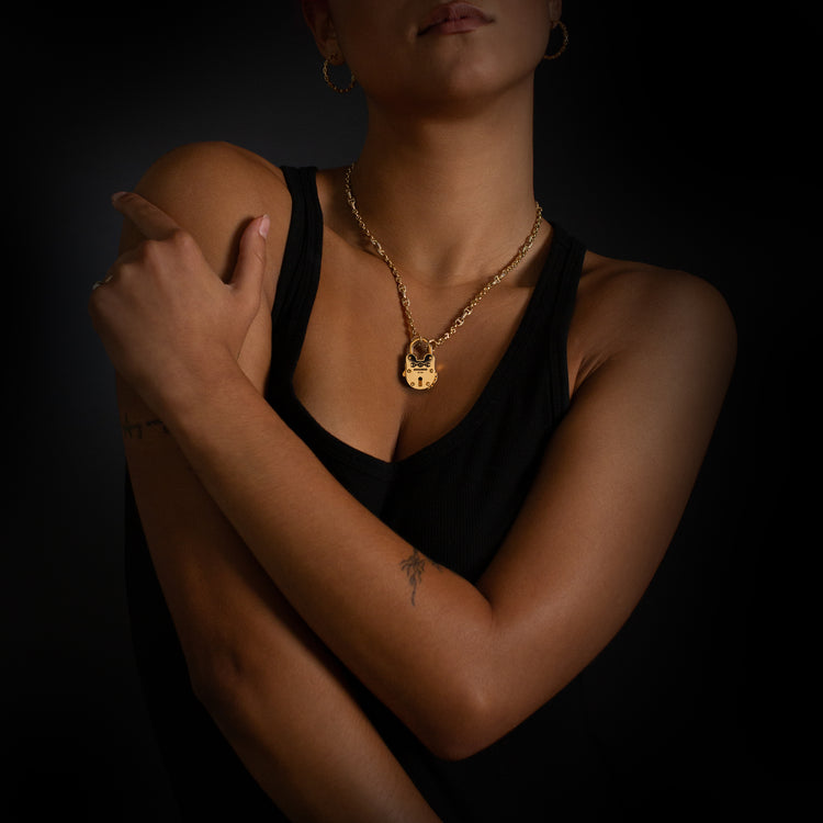 Fixed bail. Solid gold construction. Clean face with minimal marking. Balanced weight. Designed to sit close on chain and hold position.