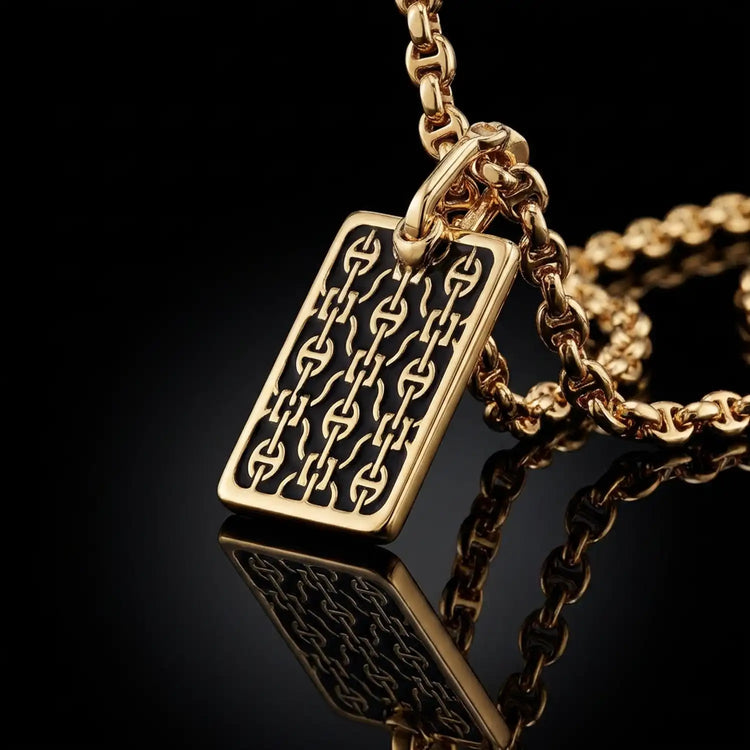 Tri-link structures translated into smaller formats. Fixed bails, balanced weight, and consistent scale. Designed to sit clean on chain with controlled orientation across styles.