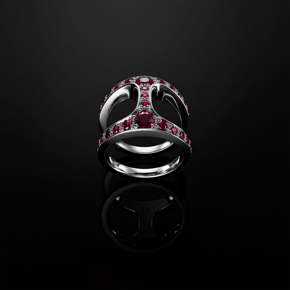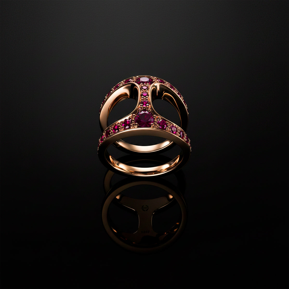 Each piece is crafted by hand and finished to HOORSENBUHS®’ exacting standards. Rubies are set with precision to maintain clean geometry and material integrity, allowing controlled light movement without softening the form.