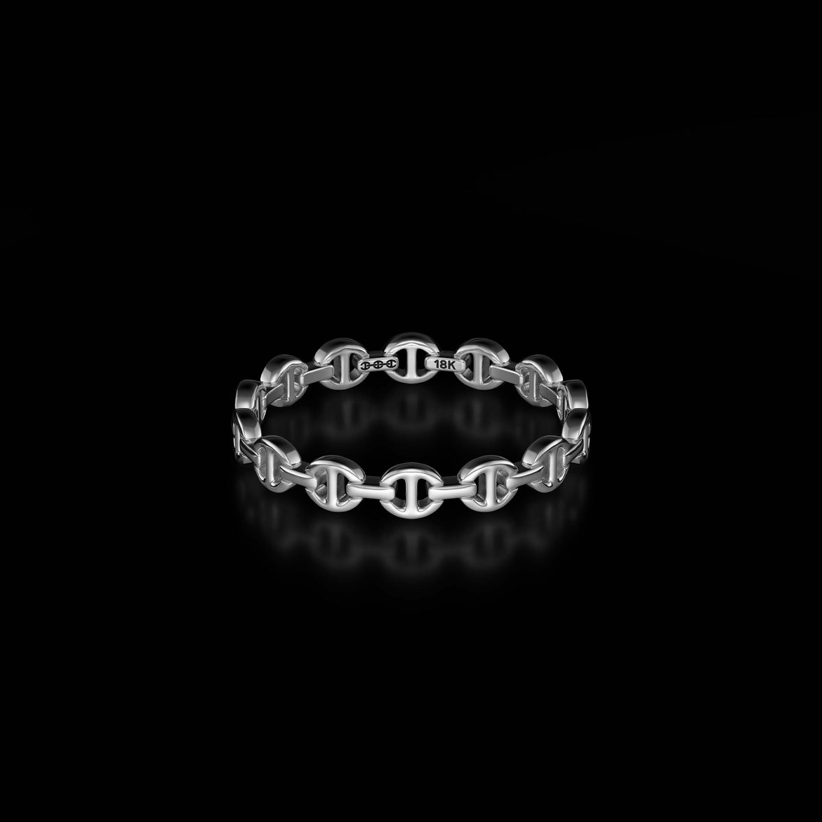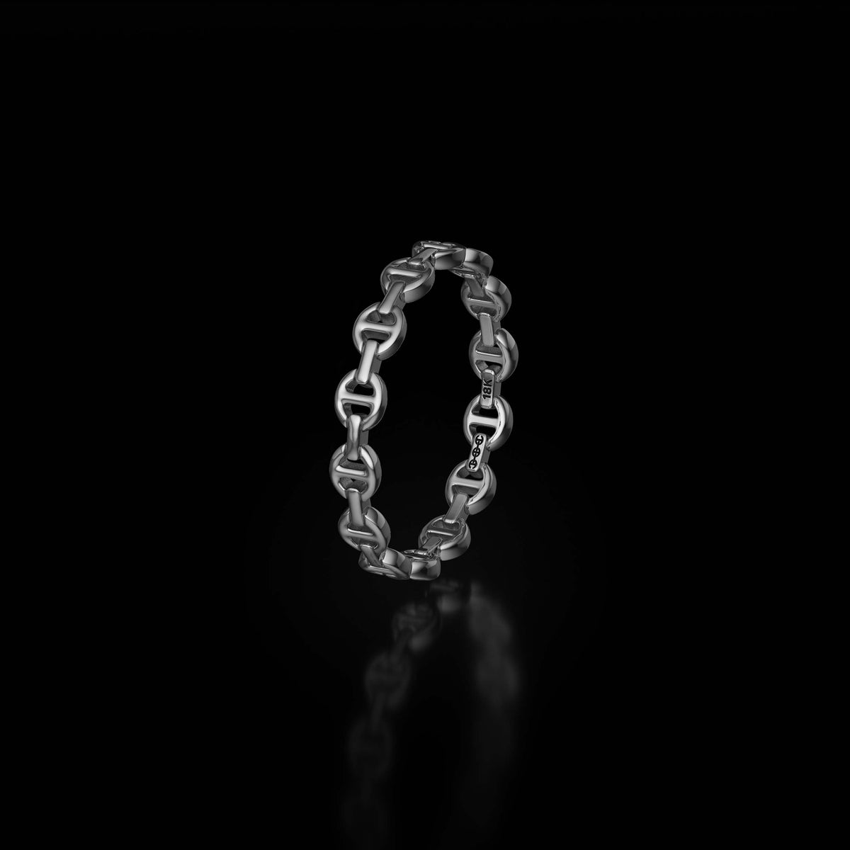 The Micro I is constructed from solid 18K gold and defined by HOORSENBUHS®’ original tri-link architecture in its most reduced form. Designed at a micro scale, the band maintains structural clarity while minimizing visual mass.