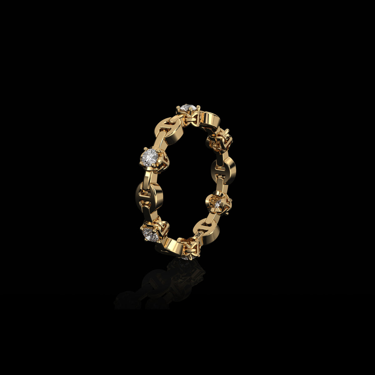 The Micro II with 6 Diamonds is constructed from solid 18K gold and defined by HOORSENBUHS®’ micro-scale tri-link architecture. Six hand-set natural diamonds are integrated directly into the structure, maintaining balance, proportion, and clarity within a reduced profile.