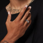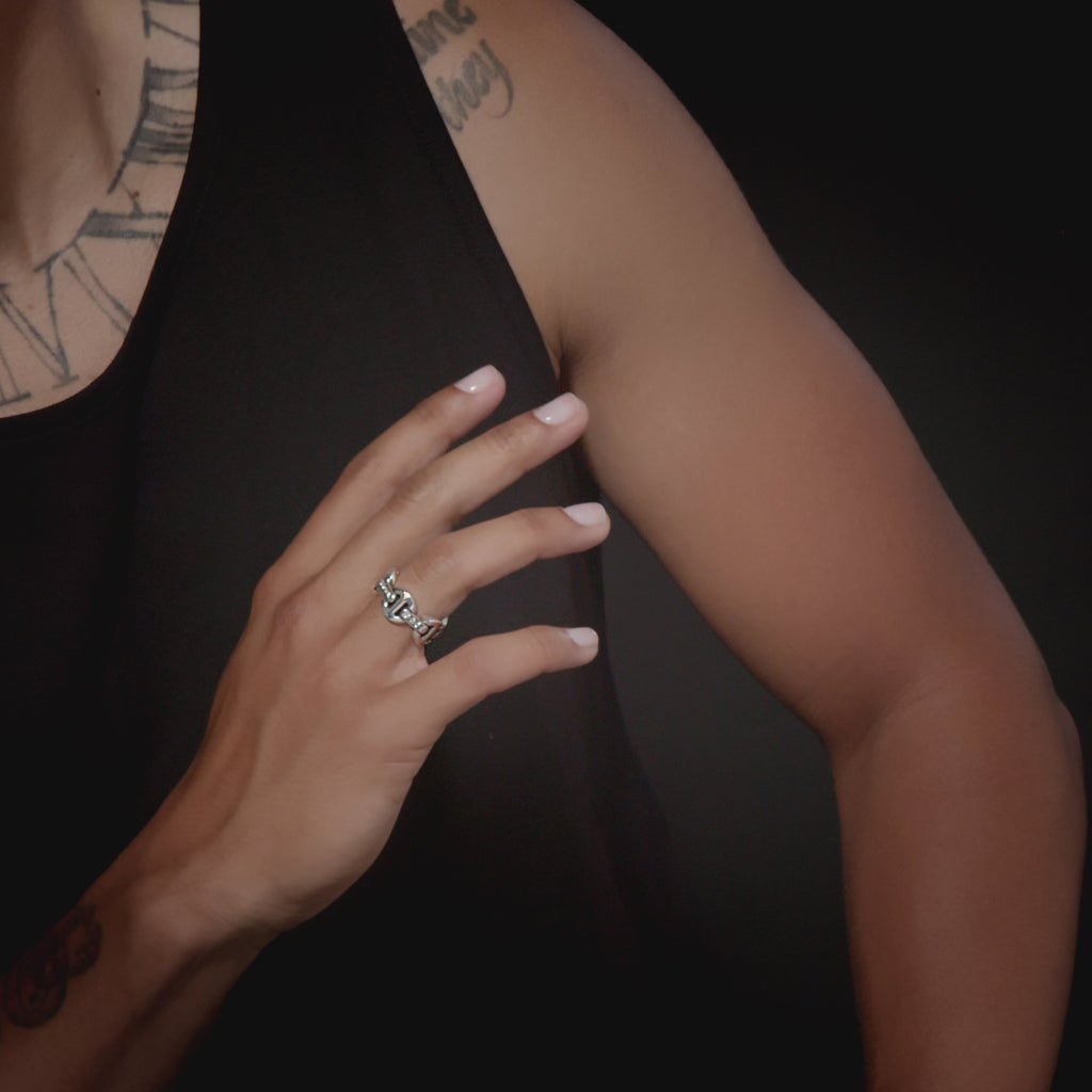 The Classic Tri-Link With Diamond Bridges Sizes 5-8.5 is constructed from solid 18K gold or sterling silver and defined by HOORSENBUHS®’ original tri-link architecture. Refined proportions give the band clarity and weight, while diamond-set bridges reinforce structure rather than ornament.