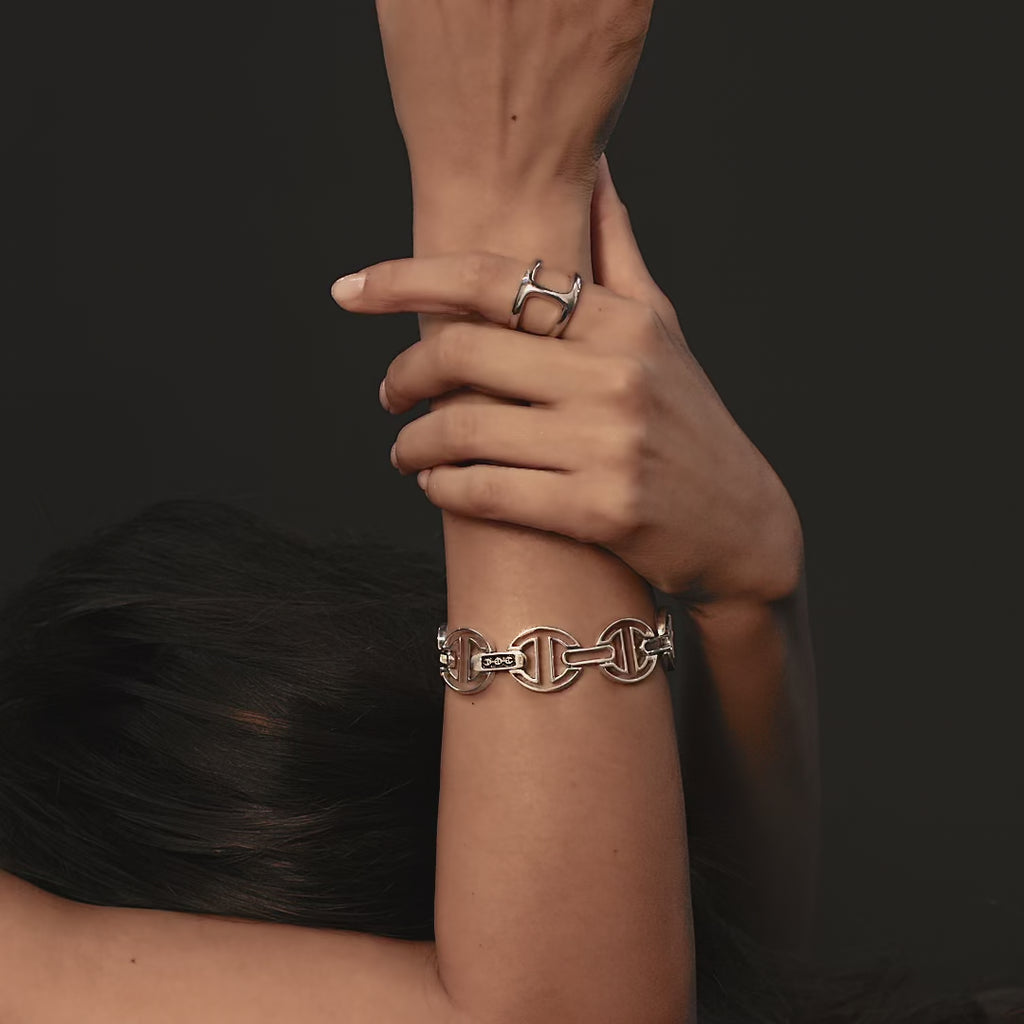 The Dame Phantom is constructed from solid 18K gold or sterling silver and defined by HOORSENBUHS®’ Phantom silhouette in a refined profile. Elongated geometry and controlled negative space maintain structural continuity across the band.
