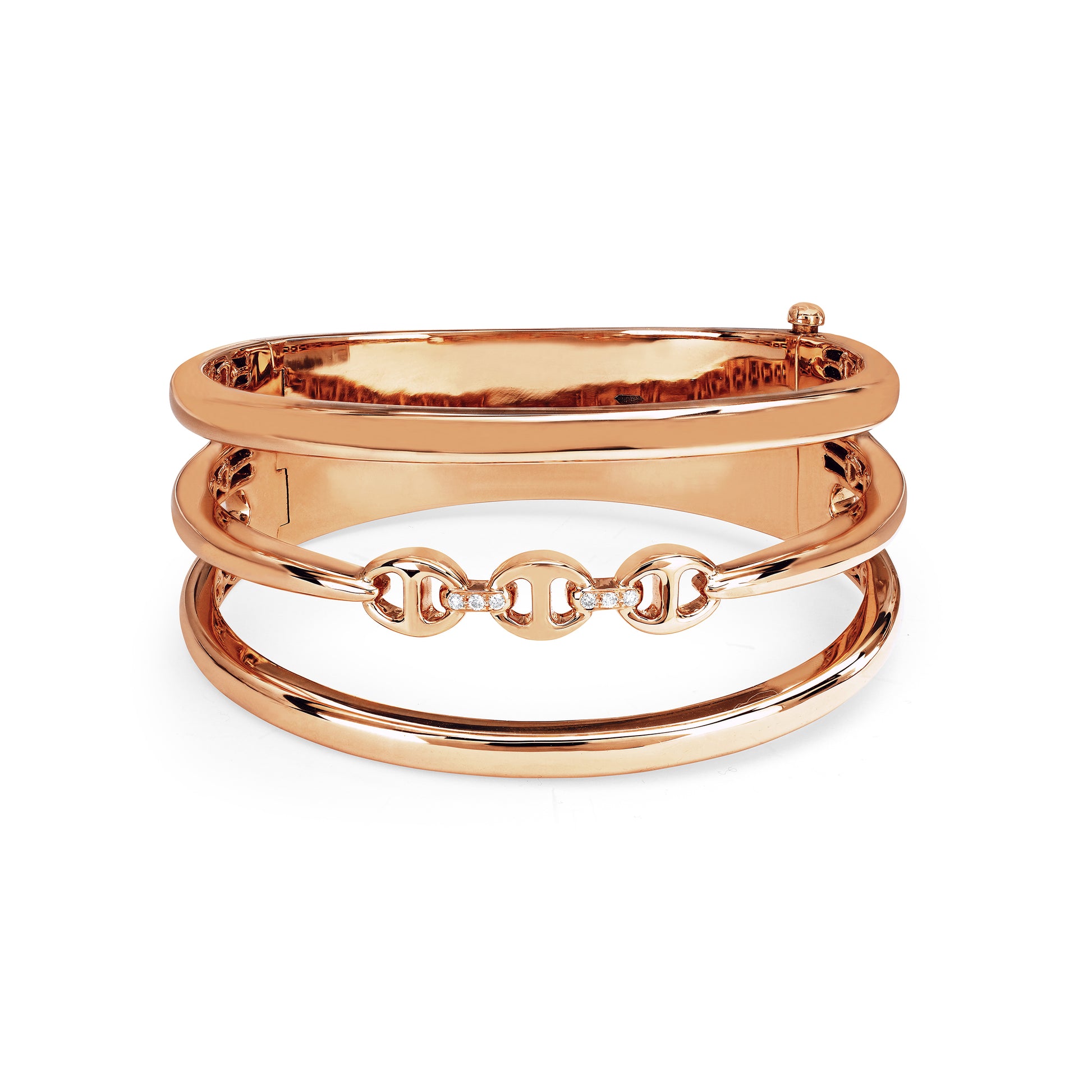 A fused triple band cuff bracelet with our iconic tri-link detail in the center.