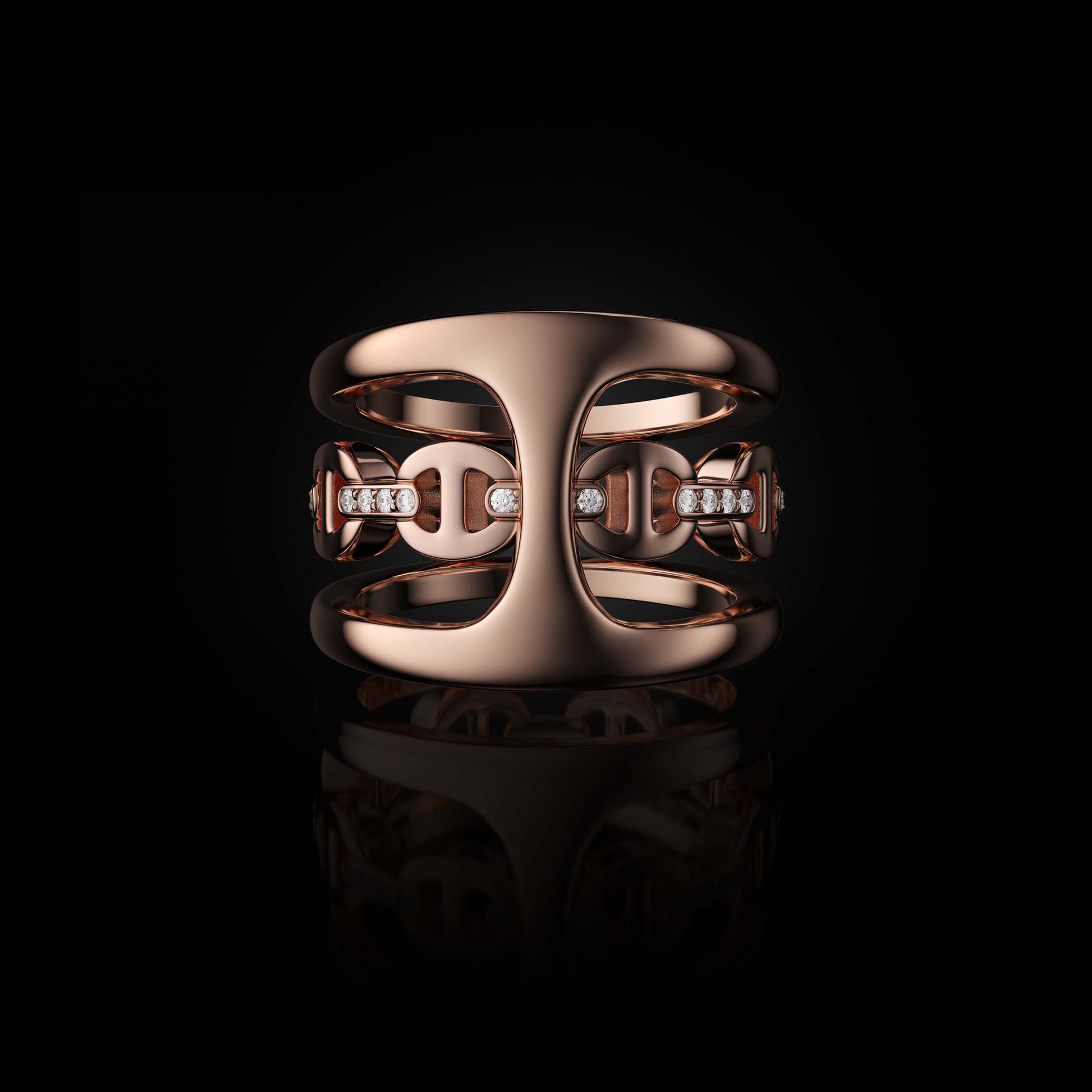 A single iconic link wrapped and elongated around the finger combined with our classic tri-link clique that snaps into place, creating a stunning customizable piece with or without diamonds.