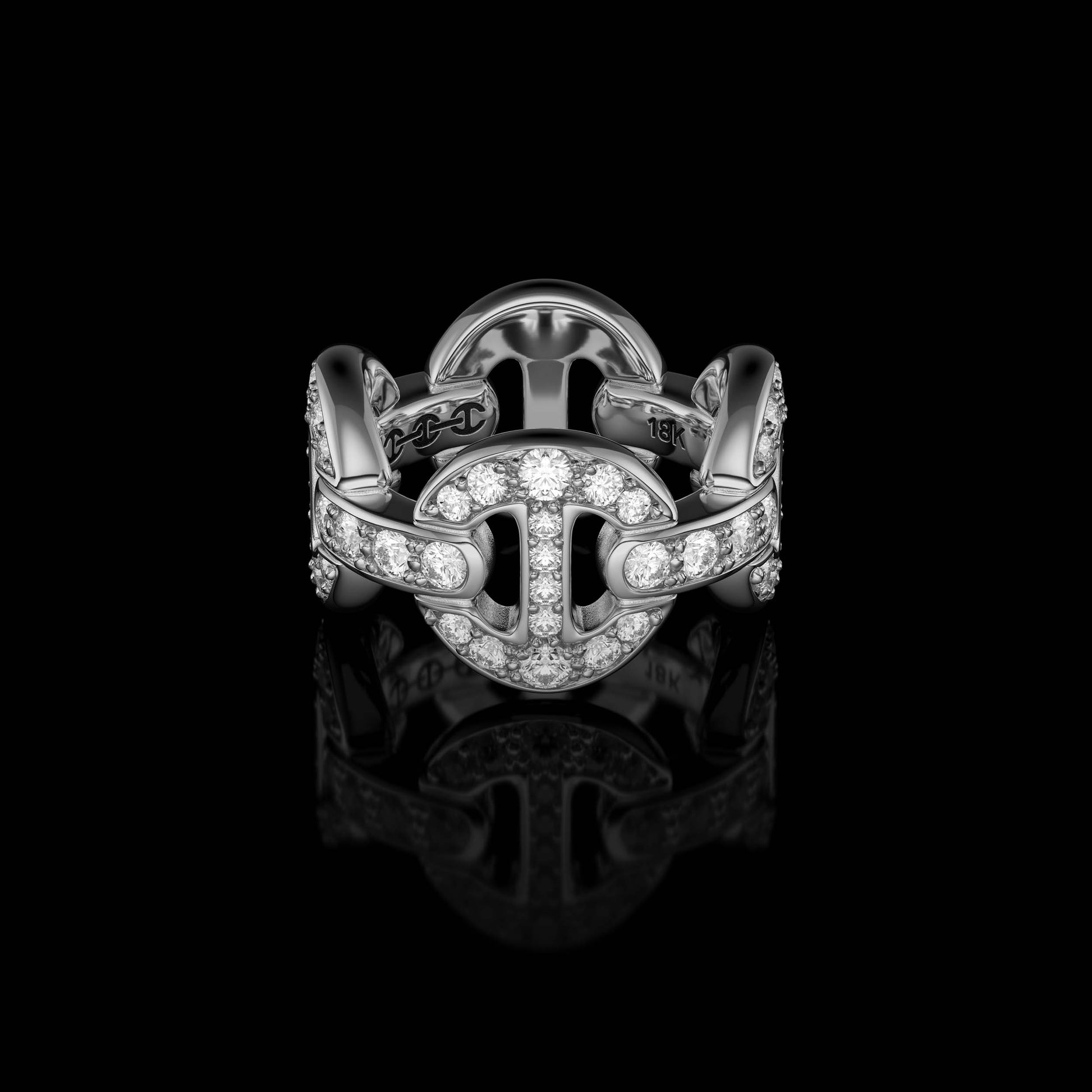 A full diamond pavé version of the largest of the link series with 4 substantial links.