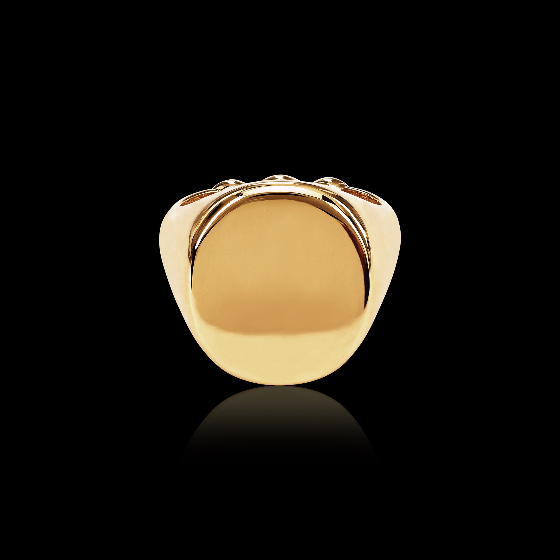 Classic signet ring for engraving with a tri-link detail at the bottom of the band.